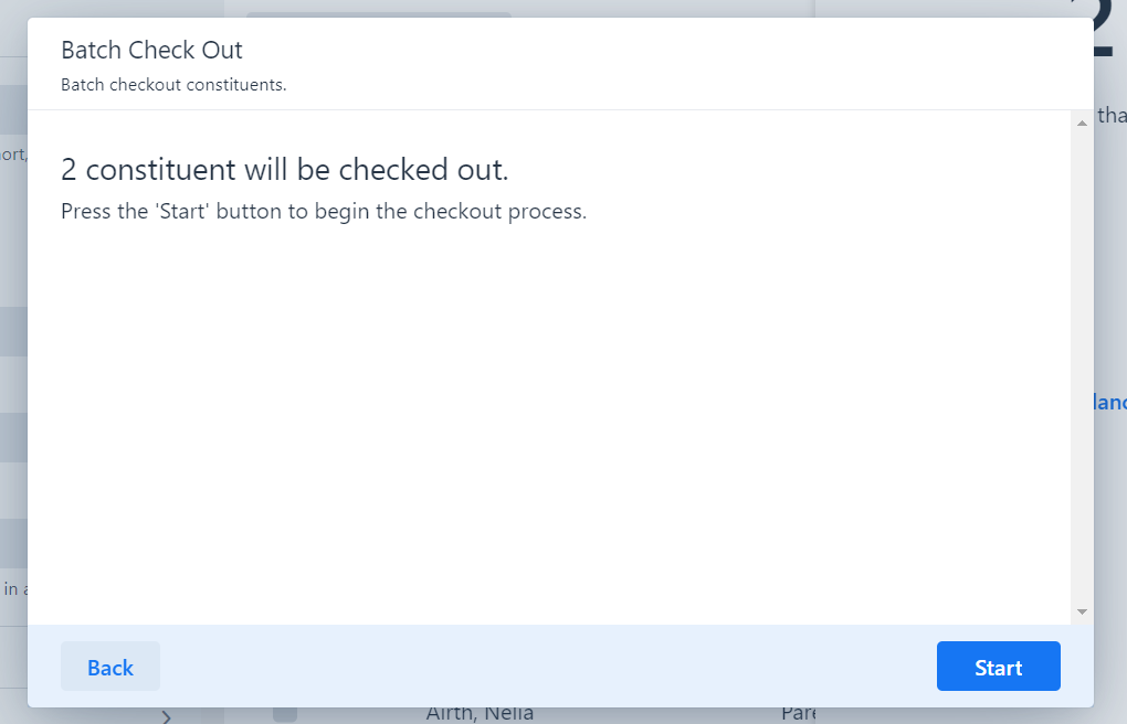 4. Confirm check-out. The system will initiate the check-out process for the selected participants, marking them as checked out and recording the check-out time.