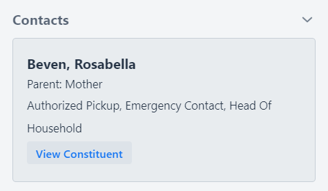 In OnTrack, each relationship between constituents can have additional metadata associated with it, such as pick-up authorization or emergency contact information. This allows you to provide specific details about the nature of the relationship.