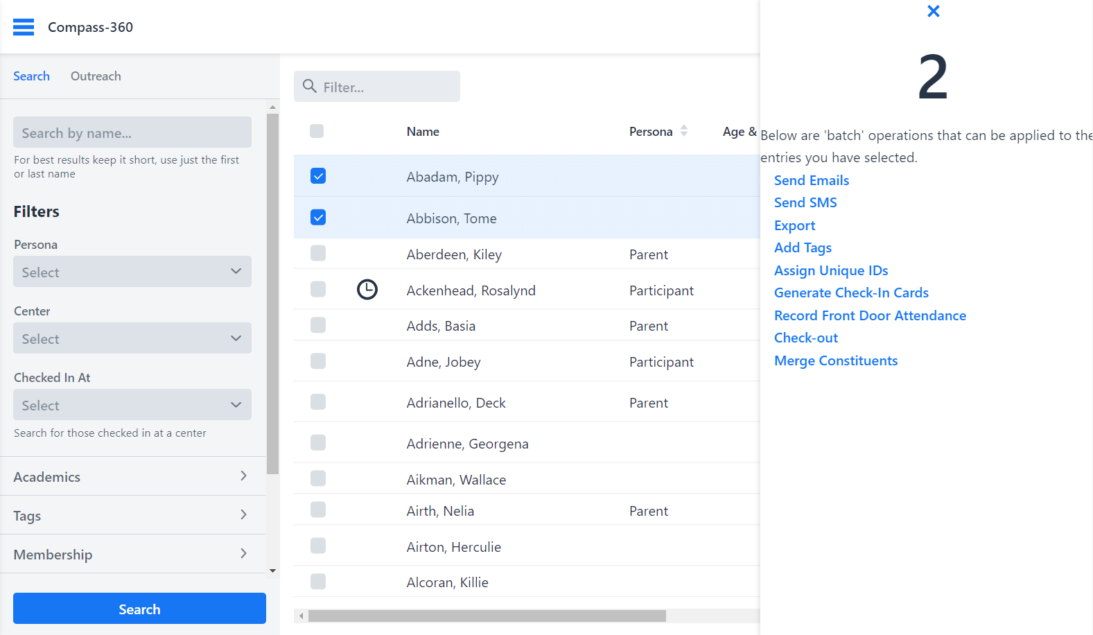 However, when you select multiple records by clicking on them in the Constituent Table, you unlock the ability to perform batch operations or actions on the selected list of constituents. Batch operations enable you to apply actions simultaneously to multiple constituents, saving time and effort.