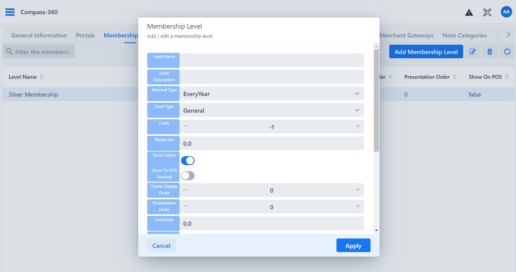 Click on "Add Membership Level" to start creating a new level