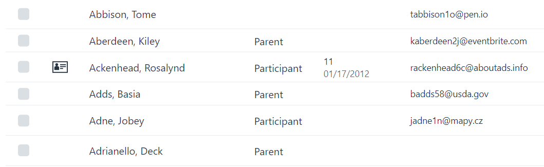 Participants with active memberships will be visually identified in the table of the Constituent Module by a small membership card icon displayed next to their name. This visual indicator helps you quickly identify constituents who have active memberships and distinguishes them from those without memberships or with expired memberships - indicated by a clock. By scanning the table, you can easily spot participants with active membership status and access their membership details for further management or tracking purposes.